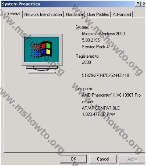 1.) Windows Server 2000’in özelliklerini kontrol ettiğimizde Sp4 güncelleştirilmesi yapıldığını görüyoruz.