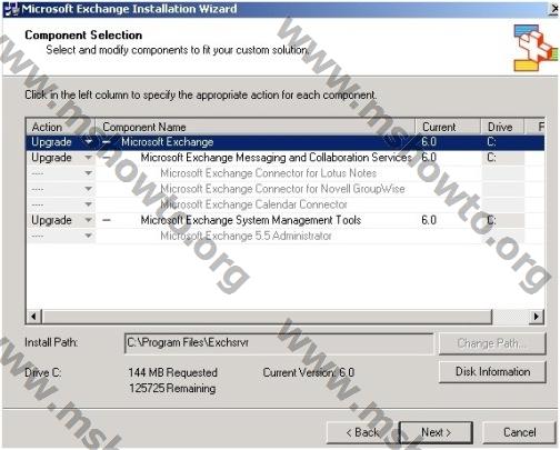 9.) Domainprep ve Forestprep işlemleri sorunsuz bir şekilde tamamlandığına göre artık Exchange 2003 upgrade işlemine başlayabiliriz. Bu işlem için ise Exchange Server 2003 Cd içerisinde I386 altında bulunan Setup çalıştırıyoruz, gelen bilgilendirme ekranını Next ile geçiyoruz. Lisans ekranında ise “I Agree “ seçeneğini seçerek Next diyoruz. Yapılan işlemlerde herhangi bir eksiklik ya da hata yoksa aşağıdaki resimdeki gibi bir görüntünün gelmesi gerekiyor. Dikkatinizi çektiyse Action bölümünde Upgrade yazılı, burada herhangi bir değişiklik yapmadan Next diyoruz.