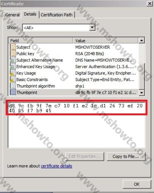 (Dikkat ederseniz, B945 li olan Thumbprint yazdım)