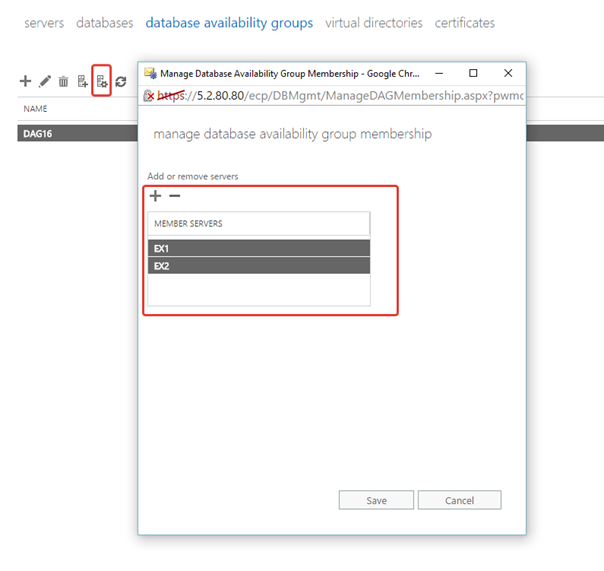 DAG oluşturma işleminden sonra Manage DAG membership ile DAG’a üye ekliyoruz.