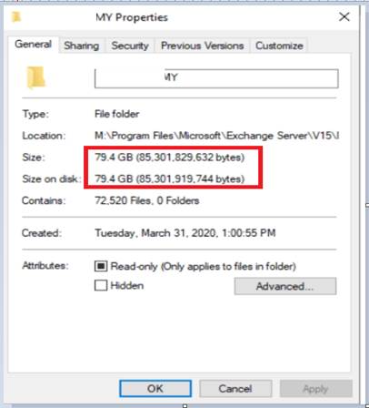 Resimde görüldüğü gibi 79.4 gb klasörümüzün boyutu