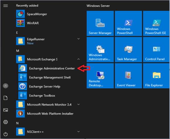Exchange Admin Center yönetim panelini açıyoruz.
