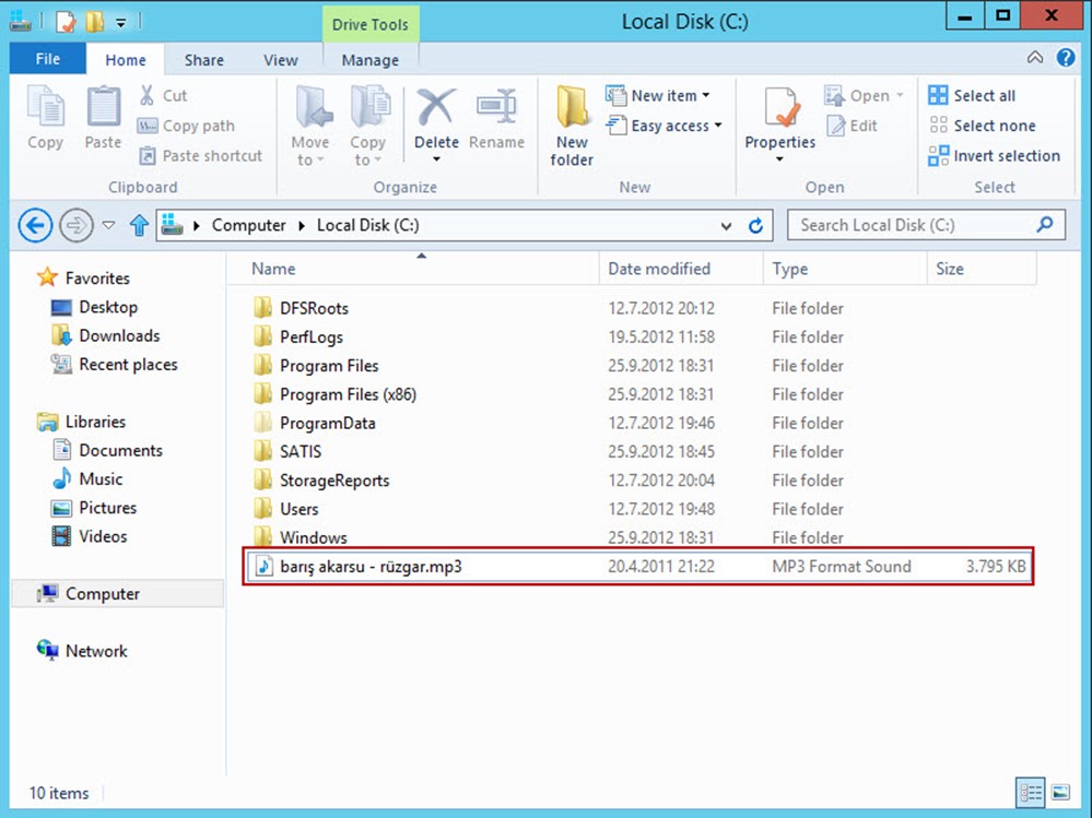 Oluşturduğumuz kuralın etkili olduğunu görüyoruz. Artık kimse SATIS adlı klasörün içerisine .avi ve .mp3 aktaramaz. Umarım bu makale size yardımcı olmuştur. Bir başka makalede görüşmek dileğiyle esen kalın.