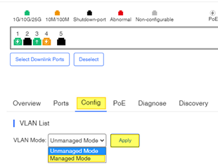 İnternet erişiminden birkaç dakika sonra önceki makalemde ( https://www.mshowto.org/bulut-tabanli-yonetilen-access-point-kurulumlari.html )cep telefonumdaki uygulamadan yapılandırdığım sistemime Ruijie Cloud web adresinden giriyorum. Sonrasında Monitoring / Device / Switch kısmında Switch’imi yapılandırmak için seri numarasına tıklıyorum. Burada Config de Vlan Mode’unu Managed yapıyorum :