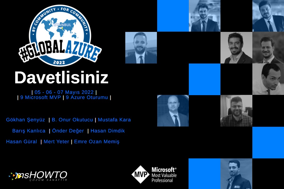 Yıllardır değişmeyen Dünya’nın en büyük Azure etkinliği olan Global Azure bu sene de kaldığı yerden devam ediyor. 3 gün boyunca Dünya’nın dört bir yanındaki topluluklar Azure meraklılarına sınıfının en iyilerinden Azure hakkında bilgileri canlı olarak veriyor. Bu sene de MSHOWTO Topluluğu olarak sizin için 5-6-7 Mayıs tarihlerinde 9 MVP ile 9 farklı oturum düzenleyerek Global Azure Istanbul 2022 etkinliğini gerçekleştiriyoruz.