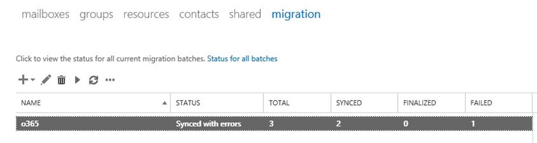 Exchange Admin Center ekranında Receipents > Migration sekmesinde bulunan 3 nokta işaretine tıklayınız.