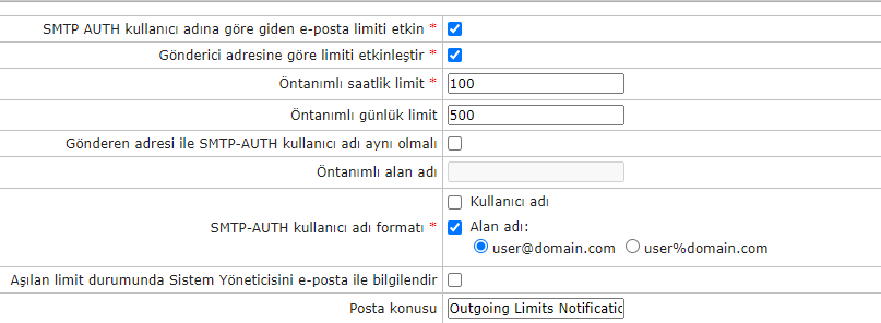 - Mail userları, mail clientlarında (Outlook, thunderbird etc..) mail kurulumlarında smtp authentication required seçeneği seçili olarak kurulmalı ve gönderen sunucu ayarlarında 587(Submission) portu seçili olmasına özen gösterin.(Exchange olmayan yapılar için)