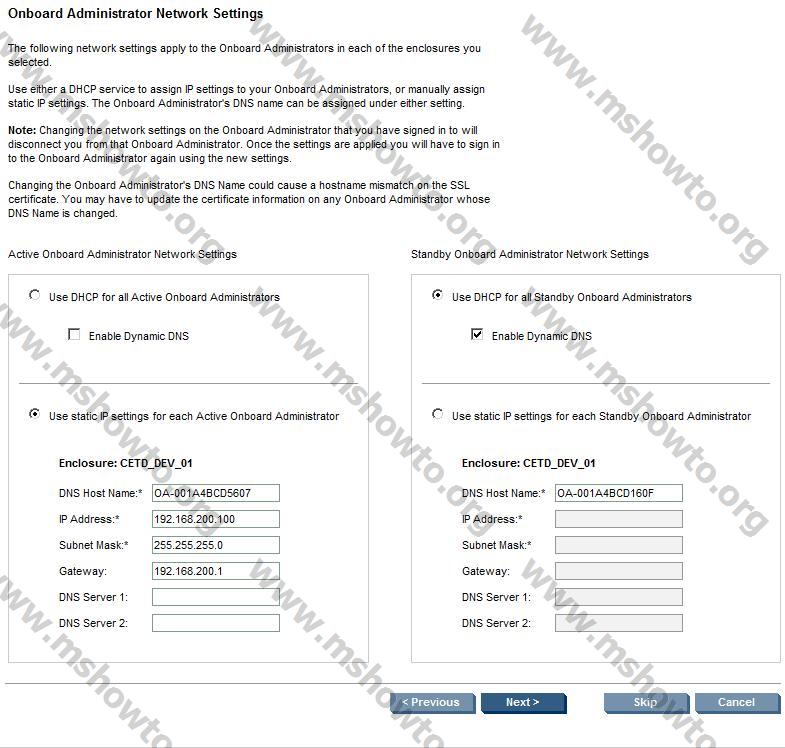 Eğerki ortamda DHCP server var ise otomatik olarak yada static olarak IP adreslerini set edebiliriz.Buradaki güzel bir özellik ise “Autofill”seçeneği ile BAY1 yada istediğimiz Bay deki cihaza IP adresi DNS bilgilerini verdikten sonrasında autofill butonuna tıklayara ondan sonra gelen server yada interconnectler devam eden IP adresi ve DNS bilgilerini otomatik olarak tamamlayabiliyor.