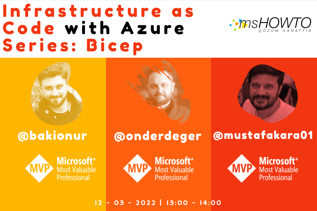 Mshowto Webinar Serisi Mart ayında da yeni konular ve konuşmacılarla devam ediyor. Son zamanların en populer konularindan olan IaC (Infrastructure as Code), canlı demolar ve zengin içeriğiyle sizlerle olmaya devam ediyor.