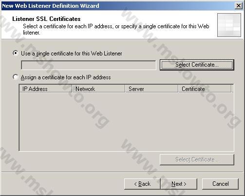 Web Listener Definition Wizard penceresinde tek bir sertifikayı Web Listener için kullanabiliyoruz ya da sertifikayı istediğimiz IP ye atayabiliyoruz. Burada dikkat edilmesi gereken nokta, bir IP ye birden fazla sertifika atayamamamız.
