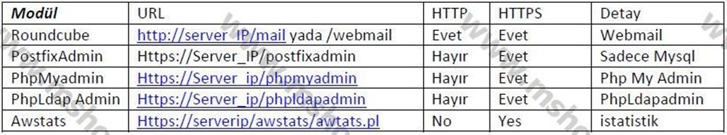 - Detaylı bilgi vs.: http://code.google.com/p/iredmail/wiki/Main_Components