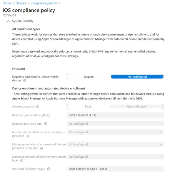 Require a password to unlock mobile devices: Kullanıcıların cihazlarına erişmeden önce bir şifre girmeleri gerekir. Parola kullanan IOS ve IPADOS aygıtları şifrelenir.