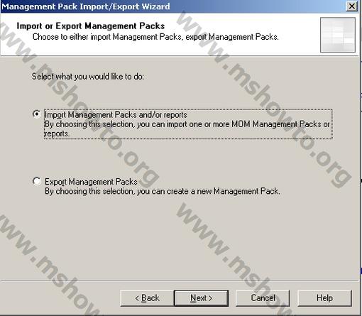 6 – Management Pack yüklemek mi yoksa yüklenmiş bir pack’i export etmek mi istediğimiz soruluyor. Biz Import’u seçip yolumuza devam edelim.