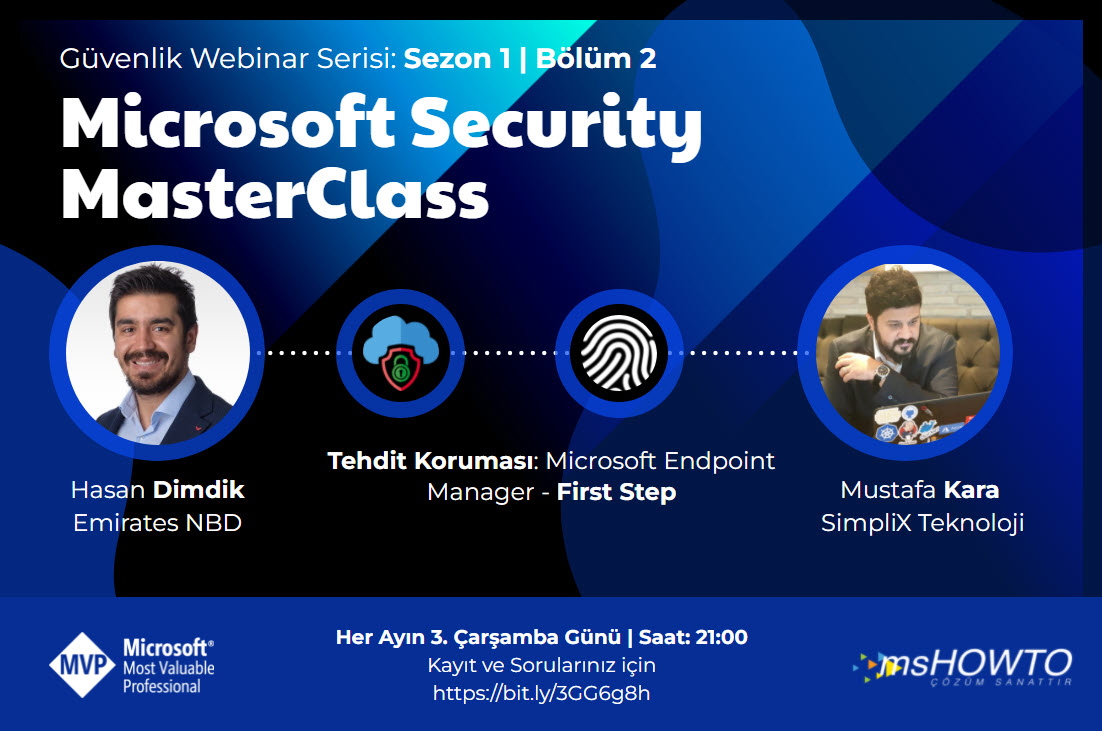 Mshowto Yöneticileri ve MVP’leri Hasan Dimdik ile Mustafa Kara uzun soluklu ve her ay yeni bir bölümü ile karşınıza gelecekleri Microsoft Security MasterClass webinar serisine başlıyorlar. Serinin ikinci konusunda Microsoft Endpoint Manager’ın hazırlık, ayarlar ve ilk katılım aşamalarından oluşan deployment konusu inceleyeceklerdir.