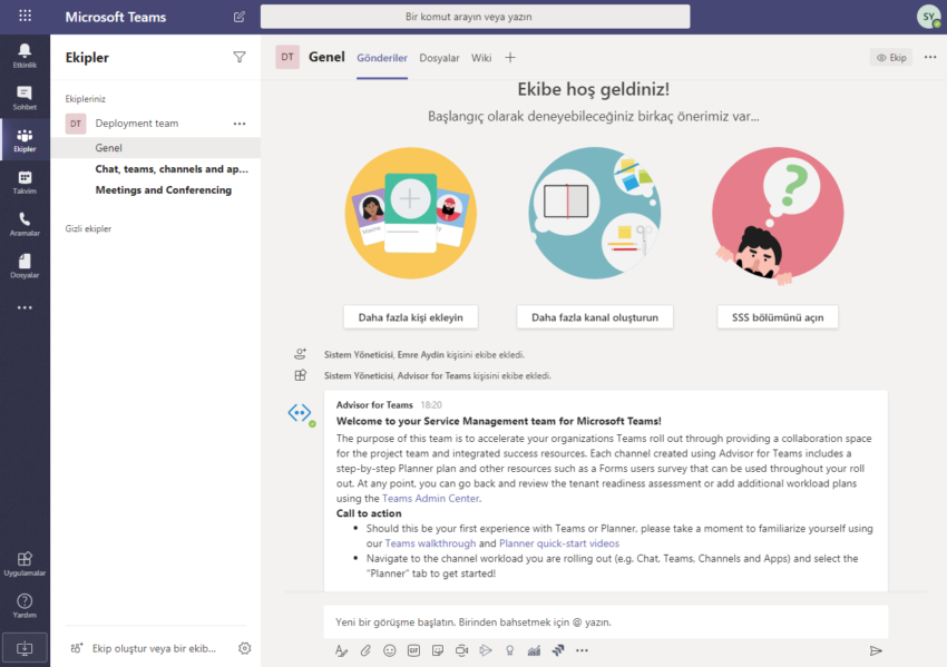 Bu işlemlerden sonra sistemin kendisi bir Teams takımı oluşturup ilgili kişileri bu grubun üyesi yapar ve bu alanda bir proje yaklaşımı ile adımları sunar.