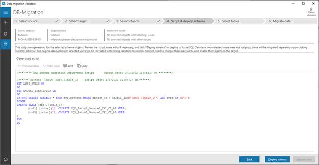 2- Using Microsoft Data migration assistant for assessing and migrating On-Premises database to AZURE, DMA helps you upgrade to a modern data platform by detecting compatibility issues that can impact database functionality in your new version of SQL Server or Azure SQL Database. DMA recommends performance and reliability improvements for your target environment and allows you to move your schema, data, and uncontained objects from your source server to your target server.