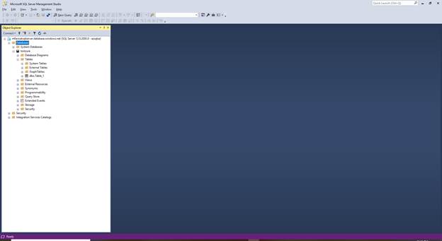 - Connect from SQL Management Studio to AZURE SQL Database to validate table creation
