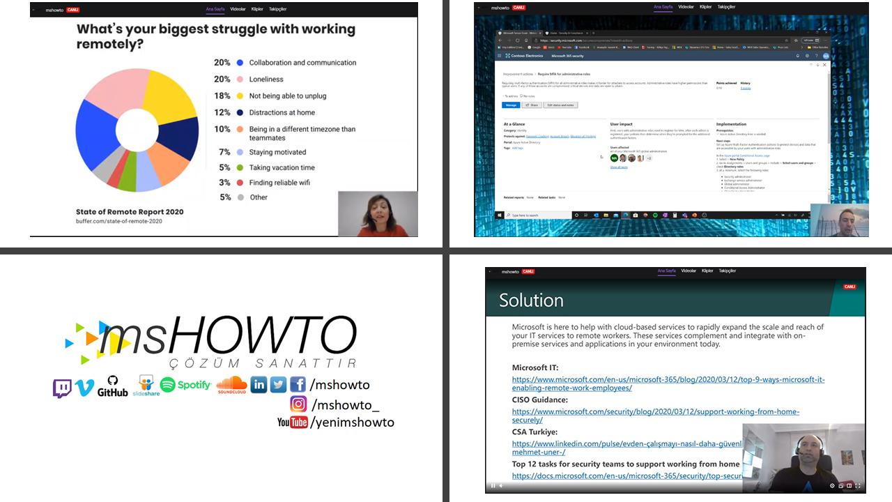 Neredeyse hepimizin evden çalışmak zorunda kaldığımız bugünlerde MSHOWTO ekibi olarak çok değerli konuşmacıların yer aldığı ve 10 saate yakın aralıksız canlı yayın yaptığımız msHOMETO etkinliğimizi 04 Nisan günü tamamladık.