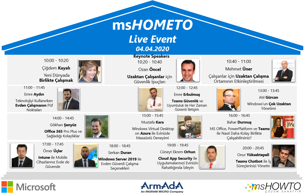 MSHOWTO Topluluğu olarak evden çalışmalar yaptığımız bugünlerde sizlere yeni teknolojileri anlatarak elimizden geldiğince faydalı olmaya çalışıyoruz. Yine birbirinden değerli konuşmacılarla sabahtan akşama kadar aralıksız devam edecek online bir etkinlik planladık. msHOMETO online etkinliğimizi kaçırmayın diye 04 Nisan 2020 Cumartesi günü gerçekleştireceğiz. Her zaman olduğu gibi bizleri yalnız bırakmayacağınıza eminiz, etkinlikte görüşmek üzere.