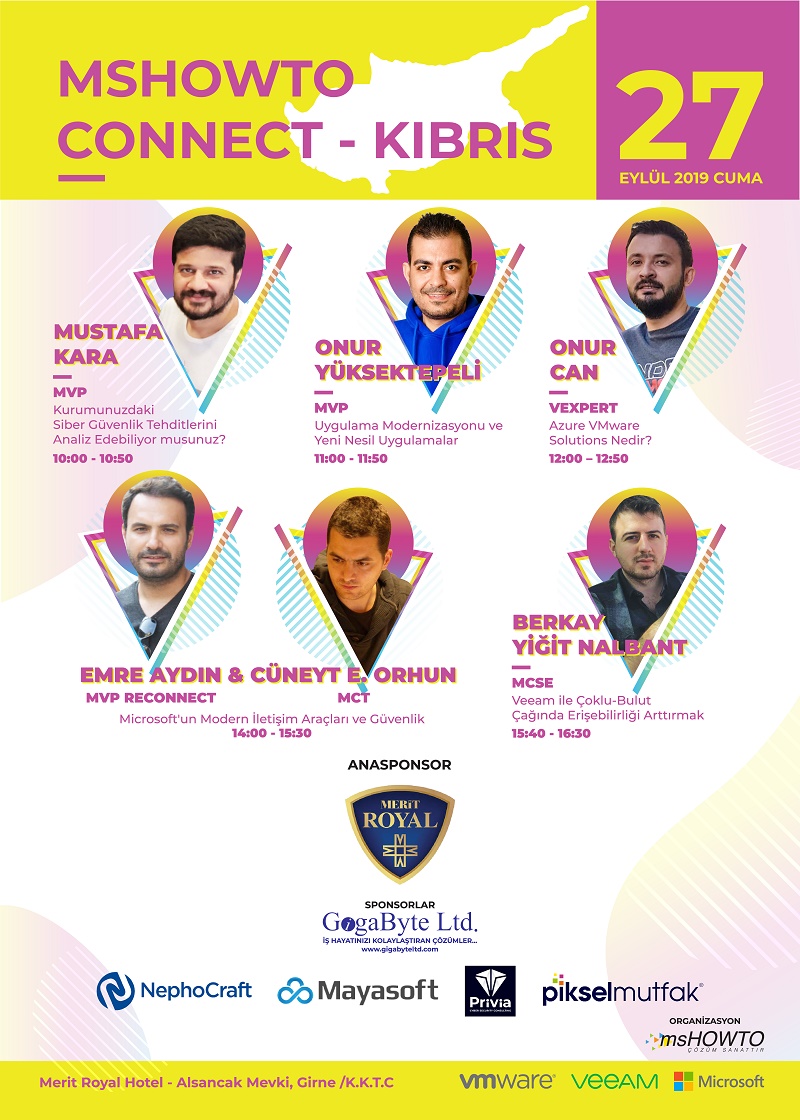 MSHOWTO Topluluğu olarak 2019 yılı içerisinde gerçekleştirdiğimiz tamamen ücretsiz etkinliklerimize devam ediyoruz. 27 Eylül 2019 günü yapacağımız etkinliğimizi gelen yoğun istek üzerine Kıbrıs‘ta gerçekleştiriyoruz. Tüm gün sürecek etkinlikte Microsoft, Vmware ve Veeam gibi teknoloji devlerinin en güncel çözümleri MVP, MCT, MCSE ve vExpert ünvanlı tecrübeli isimler tarafından aktarılacak.
