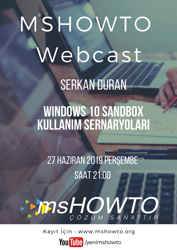 MSHOWTO Webcast‘lerine Serkan Duran’ın Windows 10 Sandbox Kullanım Senaryoları anlatımı ile devam ediyoruz. Webcast‘lerimizi YouTube kanalımızda canlı olarak yayınlıyoruz ve videolarımız kayıtlı olarak YouTube hesabımızda her zaman izlenebilir olarak kalmaktadır.