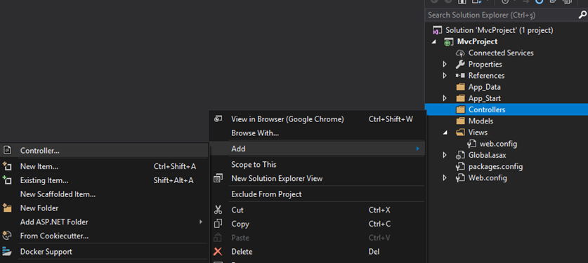 Controller klasörüne sağ tıklayalım Add>Controller seçeneğini seçelim.