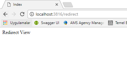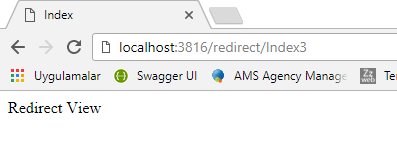 Url olarak Redirect/Index3 yolunu belirttiğimizde Index sayfamıza yönlendirme yapacaktır.