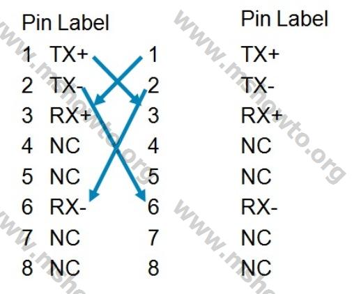 Kablonun bir ucu 568A bir ucu 568B olduğu takdirde aynı olan iki cihaz arasında bir switch,hub, yada bridge bulunmadan birbirleriyle iletişim kurabilirler. Bunun nedeni birinin transtmit pininin (Veri ileten pin) diğerinin recieve pinine (Veri alan pin) denk gelmiş olmasıdır.