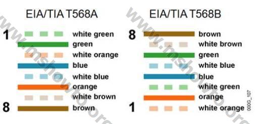 Twisted pair kabloda pinlerin bağlanmasına göre farklı renk grubu standartları vardır.