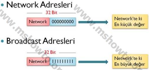 Network ID network’ü tanımlarken, Broadcast ID network’e broadcast iletişim yapılacağı zaman kullanılır.