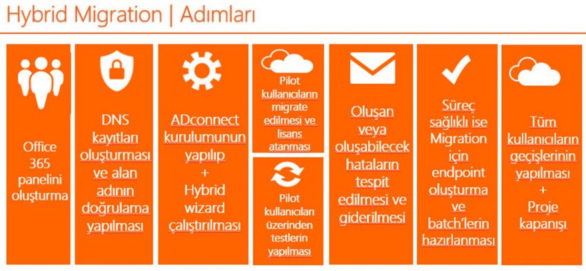 Hybrid geçişi planladığımız müşterilerde yapı incelemesine göre uygulanacak adımları öncesinde planlarız. Akabinde belirlenen adımlara göre Migration işlemleri uygulanır.