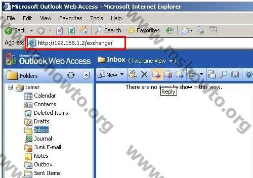 10.)  Artık Owa ‘ya NAT üzerinden erişim sağlayabiliriz. Internet Explorer’i açıyoruz ve http://192.168.1.2/exchange  adresini giriyoruz ve owa ‘mız çalışıyor.