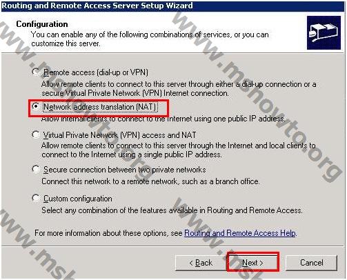3.)    Gelen ekranda “Network Address Translation(NAT) ” seçeneğini seçerek   “Next” diyoruz.