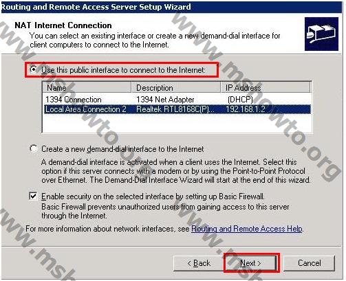 4.)    Nat  Internet Connection bölümünde ise mevcut  network bağlantımızı seçerek “Next”  diyoruz.