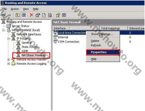 6.)    RRAS yönetim aracına giriyoruz ve “Ip Routing”  altında yer alan “NAT / Basic Firewall”  seçeneğini işaretleyerek sağ tarafta bulunan “ Local Area Connections 2”  üzerinde  “Properties” diyoruz.