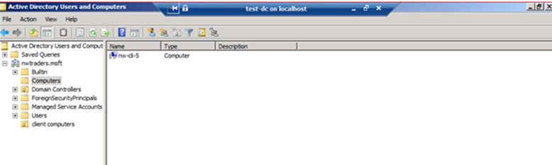Nwtraders.msft domainimize yeni bir computer objesi ekleyelim.