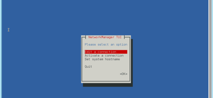 2– Sonraki adımda servisin start ve enable durumda olacağını göreceksiniz ve aşağıdaki console karşımıza çıkacaktır. Buradan Edit a connection