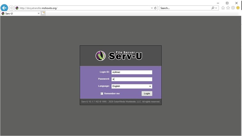 DNS ismimizi oluşturduğumuz alan adımız ile herhangi bir browser dan Login oluyoruz.