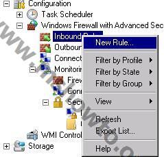 Windows Server 2008 RC0’da Inbound Rules Oluşturmak için;