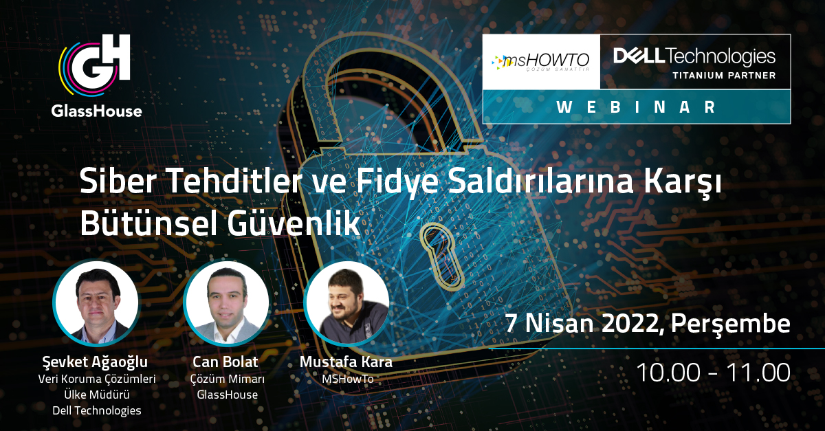 7 Nisan Perşembe günü saat 10.00-11.00 arasında GlassHouse, Dell Technologies ve msHOWTO birlikteliği ile gerçekleştireceğimiz webinar’ımızda, fidye yazılımları ve siber saldırıları engellemek için yönetilen güvenlik servisleri ile alabileceğiniz proaktif önlemlerin yanında siber kurtarma çözümleri ile kritik verilerinizi izole ederek saldırı sonrasında normal iş akışınıza hızla dönebilmenin yöntemlerini konuşacağız.