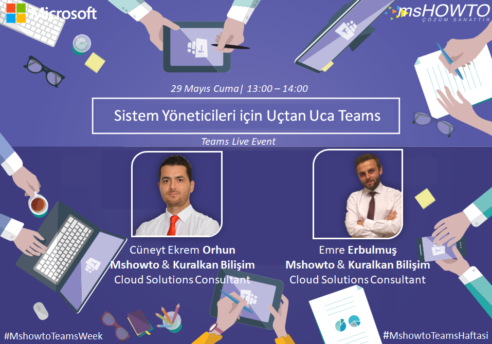 Mshowto Teams Haftasında sizler için birbirinden yararlı ve tamamen gerçek dünya senaryolarını üzerine kurulu webcast’ler planladık. Bu webcast’lerin ikincisinde değerli yazarlarımızdan Cüneyt Ekrem Orhun ile Emre Erbulmuş sizlerle olacaklar ve Sistem Yöneticileri için Uçtan Uca Teams kullanımını tamamen uygulalamalı olarak anlatacaklar.