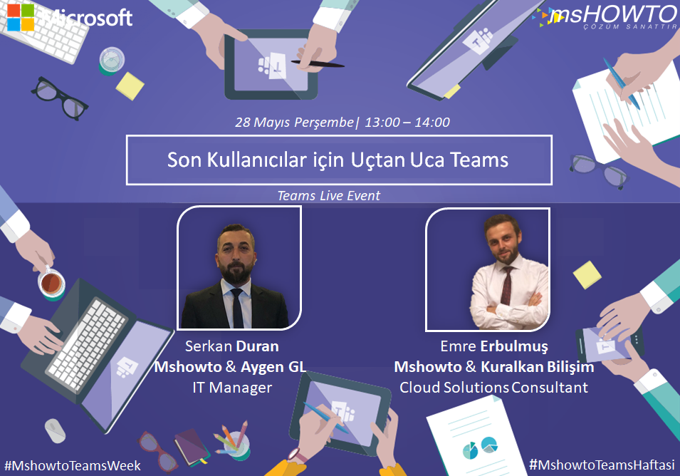 Mshowto Teams Haftasında sizler için birbirinden yararlı ve tamamen gerçek dünya senaryolarını üzerine kurulu webcast’ler planladık. Bu webcast’lerin ikincisinde değerli yazarlarımızdan Serkan Duran ile Emre Erbulmuş sizlerle olacaklar ve Son Kullanıcılar için Uçtan Uca Teams kullanımını tamamen uygulalamalı olarak anlatacaklar.