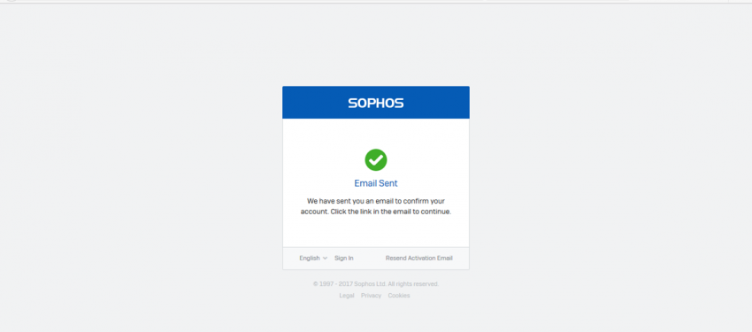 Size Sophos’tan gelen doğrulama e-mail’indeki linke tıklamanız gerekiyor ve ben doğrulama linkine tıklıyorum.
