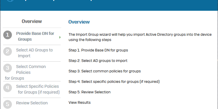 Açılan Import Group Wizard üzerinden aşama aşama ilgili grupları içeriye alıyoruz.