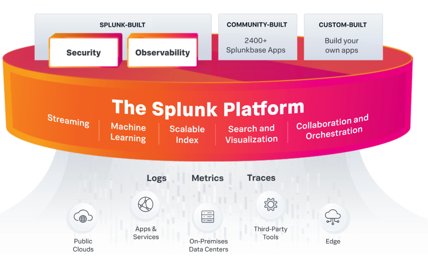 - Splunk, üreticiler ve diğer müşteriler tarafından oluşturulan Splunkbase uygulamaları. Bunlara örnek olarak log alma, log parse etme, görselleştirme, zenginleştirme v.b. verebiliriz.