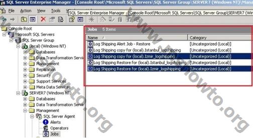 İkinci (yedek) olarak hizmet veren Sql Server ‘da job’ları kontrol ettiğimizde copy ve restore işlemleri için job oluştuğunu göreceksiniz.