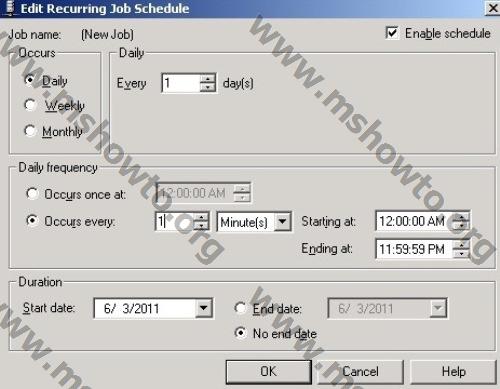 Benim test ortamımda her iki Sql Server’da aynı lokasyonda bulunduğu ve veri kaybını mümkün olduğunca en az seviyeye indirmek için ben burada her dakika işlem yapmasını tanımlayarak Ok ile onaylıyorum, siz isterseniz farklı zaman aralıklarını belirterek işleminize devam edebilirsiniz.