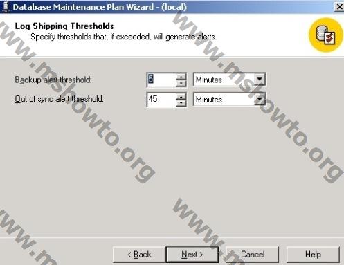 Log Shipping Thresholds ekranında varsayılan değerlerin dışına çıkmadan bir sonraki geçiyoruz,