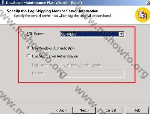 Specify the Log Shipping Monitor Server Information ekranında Log shipping faaliyetlerini izleyebileceğimiz Sql sunucuyu tanımlayabilme olanağına sahibiz, bu ekranda sunucu bilgilerini tanımlayarak bir sonraki ekrana geçiyoruz.