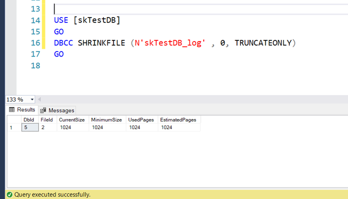 Resim – 24‘de görüldüğü gibi log kullanım yüzdesi ve kullanılan log boyutu düşmüştür.